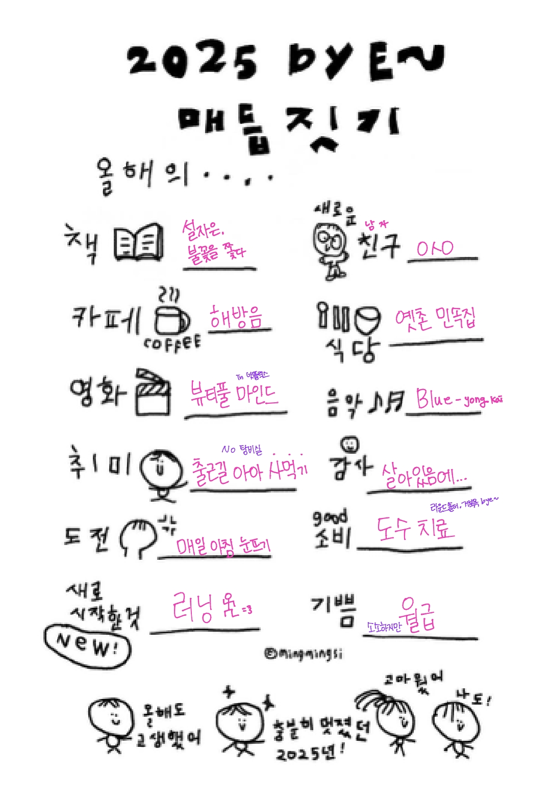 올해의 책·영화·맛집부터 새해 다짐까지! 치열하고 귀엽게 산 우리들의 1년 요약. 💟 12월 11일의 질문